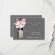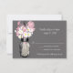 Carte de réponse assortie parfaite pour un mariage champêtre ou peut-être que vous aimez simplement les pots Mason ! Pot Mason suspendu à un crochet rempli de fleurs sauvages champêtres. Un fond Gris Ardoise contraste avec les couleurs du pot Mason suspendu et des fleurs sauvages, des marguerites roses et blanches. Si vous avez des questions sur ce design ou si vous souhaitez une modification de couleur, veuillez m'envoyer un e-mail à paula@labellarue.com Vérifiez également les cartes de RSVP, de RÉCEPTION et de PLACEMENT DES INVITÉS pour assortir !