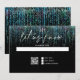 Réponse moderne abstraite - Une guirlande de sarcelle audacieuse et scintillante cascade sur la page, avec la mention "faites-nous savoir" en calligraphie manuscrite - les initiales du couple en haut - le reste du texte est simple et épuré - sur fond noir. Papeterie de mariage élégante.