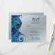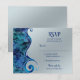 Le texte sur cette carte de réponse bleu et argent est entièrement personnalisable. Le design de la carte est inspiré des tropiques, de l'eau, des coquillages paua, des vagues et des reflets. Parfait pour un mariage à destination ou sur la plage ou un mariage avec un thème de couleurs bleu et argent.