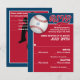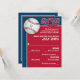 Cette carte de réponse de Bar Mitzvah sur le thème du baseball est coordonnée avec les invitations de Bar Mitzvah de baseball de cette collection. Elle comporte une balle de baseball rouge et blanche dans le coin supérieur gauche avec une étoile de David bleu clair centrée dessus que vous pouvez supprimer si vous le souhaitez. Cette carte de réponse de baseball comporte un mélange de polices qui correspondent aux invitations et le verso est rouge, marine et blanc avec une silhouette noire d'un joueur de baseball sur le point de lancer la balle. Les sélections de repas peuvent être imprimées au verso en blanc ou vous pouvez supprimer les mots si vous n'en avez pas besoin.