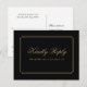 Une élégante carte de réponse sur le thème de l'art déco avec une typographie chic sur fond noir. Le verso présente vos coordonnées et une demande de chanson pour les invités. Conçue par Thisisnotme