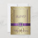 Célébrez votre anniversaire de mariage avec style avec ces élégantes cartes de réponse pour les invitations d'anniversaire de mariage de 50 ans à effet doré damassé, pour lesquelles ceci est la carte de réponse. Ces invitations élégantes sont un mélange merveilleux de traditionnel et de moderne. Les graphiques informatiques donnent à cette carte un aspect 3D même si le ruban de satin violet, la broche en or et diamant et le numéro 50 en métal doré sont juste une image photo imprimée sur la carte plate. Veuillez commander sur du papier blanc uni comme indiqué, pour laisser tous les détails de la conception ressortir. Au dos, ajoutez votre texte de réponse pour la fête d'anniversaire de 50 ans. Cette carte NE contient AUCUN embellissement. Tout ce que vous voyez est imprimé sur une surface de carte plate. Souhaitez-vous une couleur de ruban différente ou de l'aide pour la