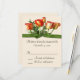 Carte de réponse avec bouquet de bouquet orange et jaune rose et faux ruban vert et arc. Choix de finitions et de couleurs de papier. Les cartes sont fournies avec des enveloppes. com