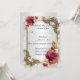 Jolies roses rouges et cadre à motif de feuilles dorées. Cette jolie carte de réponse/réponse de mariage est prête à être personnalisée pour votre jour de mariage spécial. Personnalisez la carte en changeant le texte dans les champs prévus au recto et au verso. Vous pouvez changer la police, la taille et la couleur, ainsi que le type et le style de papier.
