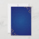 Complétez votre élégante suite de papeterie de mariage bleue et dorée avec cette carte de réponse luxueuse présentant une finition sophistiquée dans les coins en or. Conçue pour se coordonner parfaitement avec votre assortiment d'invitations, cette carte de réponse permet aux invités de confirmer leur présence avec style.
