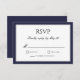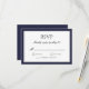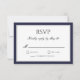 Carte de réponse RSVP à bordure bleue marine et grise. Texte en bloc et écriture élégante. Dos bleu marine.