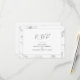 Une carte de réponse RSVP moderne et épurée présentant un effet de texture marbrée grise douce avec "RSVP" en élégante écriture grise sur un fond blanc croquant. Des champs simples et faciles à lire fournissent un espace pour les coordonnées, les noms, l'adresse et toute information supplémentaire pour correspondre à la papeterie de mariage. Le texte, les noms et la date peuvent être entièrement personnalisés pour s'adapter à n'importe quelle saison.
