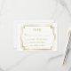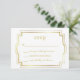Carte de réponse RSVP blanche et or. Le cadre et les lettres en faux feuille d'or font de ce design un élément élégant à associer à toute invitation