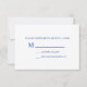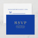 Conçue pour deux mariés, cette carte de réponse RSVP est élégante, chic et masculine. C'est un fond bleu marine croquant avec une police de caractères de couleur or stylisée. Il s'agit d'une carte RSVP double face, car elle correspond à une invitation de mariage bleu marine et or. Le verso de cette invitation est bleu marine sur blanc pour que l'invité puisse répondre facilement.