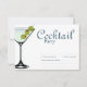 Cette carte de réponse RSVP garde les choses simples et élégantes avec un fond blanc propre et un motif de verre à martini gras. Parfait pour recueillir les réponses des invités à votre mariage cocktail ou fête haut de gamme.
