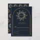 Cette conception présente un art céleste bleu marine et doré, y compris un monogramme de soleil ondulé linéaire bohème, carte de réponse de mariage personnalisée. Ce produit peut être facilement personnalisé. Si vous avez besoin d'aide pour la personnalisation du produit ou si vous avez besoin de produits assortis, veuillez me contacter via Zazzle.