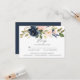Conçue pour s'harmoniser avec notre collection de mariages bleu marine, cette élégante carte de réponse rsvp présente une aquarelle bleu marine floral et un design moderne. Personnalisez cette carte avec la date de réponse et les choix de nourriture/chanson.