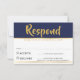 Carte de réponse RSVP moderne bleu marine or