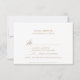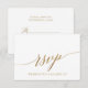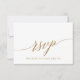 Cette élégante carte de réponse pour demande de chanson en calligraphie dorée est parfaite pour un mariage simple. Le design neutre présente une carte minimaliste ornée d'une typographie romantique et fantaisiste en faux feuillet doré. Créez votre liste d'invités de mariage et votre liste de chansons de piste de danse en même temps ! Cette carte de réponse de mariage demande commodément aux invités s'ils pourront assister à votre mariage, et quelle chanson les fera danser.