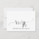 Cette simple carte de réponse de demande de chanson de calligraphie en feuille d'argent est parfaite pour un mariage élégant. Le design à l'éclat argenté présente une typographie chic et un cœur métallique luxueux. Créez votre liste d'invités de mariage et votre liste de chansons de piste de danse en une seule fois ! Cette carte-réponse de mariage demande commodément aux invités s'ils pourront assister à votre mariage, et quelle chanson les fera danser.