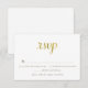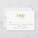 Cette jolie carte de réponse en or et blanc est parfaite pour les anniversaires de mariage en or. La carte RSVP comporte une calligraphie dorée qui indique "rsvp" et un texte modifiable ci-dessous.