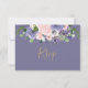 Conçue pour se coordonner avec notre collection de mariage Chelsea, cette carte de réponse de mariage chic présente une belle composition florale aquarelle rose tendre et lavande violette et une lettre manuscrite au pinceau script. Personnalisez-la facilement et rapidement avec vos détails, il suffit d'appuyer sur le bouton personnaliser pour réorganiser et formater le style et l'emplacement du texte. (c) The Happy Cat Studio