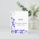 © Socialite Designs. Carte de réponse élégante avec des tourbillons de bleu royal et de blanc, prête à être personnalisée avec vos propres informations. Nous avons inclus une option de réponse par courriel à cette carte de réponse élégante. Choisissez parmi plusieurs types de papier pour invitations. Besoin d'AIDE pour la personnalisation ? N'hésitez pas à me contacter avec vos besoins.