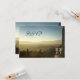 Carte de réponse moderne avec deux verres et raisins sur un tonneau de vin, avec vue sur un beau paysage. Vous pouvez personnaliser tous les textes. Cette carte de réponse correspond aux invitations.