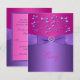 Cette carte de réponse de mariage florale rose fuchsia et violet a un ruban violet IMPRIMÉ et une boucle de bijoux en pierre précieuse et diamants IMPRIMÉE qui correspond à l'invitation de mariage présentée ci-dessous. ***VEUILLEZ NOTER qu'il n'y a aucun élément en relief sur ce design. Tout est imprimé à plat. Le texte et le papier sont entièrement personnalisables. Je n'utiliserais aucun des papiers colorés (champagne métallisé, or, argent, feutre, tacheté) car ils vont tous décolorer l'invitation. Le papier lin ajoutera une texture de fines lignes que vous pourriez ne pas vouloir. Les papiers basiques ou recyclés sont une alternative moins chère si vous avez un budget serré. ***VEUILLEZ NOTER que si vous changez la police ou la taille de la police, cela peut modifier la façon dont votre invitation s'imprime. Elle s'imprimera telle que vous la voyez sur votre écran, donc si vous avez des problèmes d'alignement ou de taille, veuillez me contacter pour obtenir de l'aide. Je ne verrai pas votre invitation une fois que vous l'aurez commandée, et Zazzle ne modifiera rien (