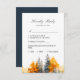Carte de réponse de mariage d'automne en forêt. Bois champêtre. Pins. Collection de l'automne en forêt aquarelle. Peintures aquarelles modernes de la forêt aux couleurs d'automne. Parfait pour les mariages en montagne, les fêtes de bébé et de mariage, les anniversaires, les célébrations de fêtes en plein air