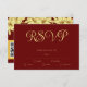 Ces cartes de réponse simples mais élégantes ont un design moderne avec des lettres dorées sur le devant sur un fond bordeaux et des lettres bordeaux sur un fond doré au verso. Des lys ornent le haut du verso et vos invités ont l'option supplémentaire de répondre via un code QR qui les amène sur votre site web ou par e-mail. 📌Épinglez ce design sur votre tableau de bord de mariage sur Pinterest et profitez de votre parcours de planification de mariage.