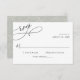 Conçue pour se coordonner avec notre collection de mariage Romantic Script, cette carte de réponse personnalisable présente un texte de calligraphie script fleuri associé à une police sérif élégante et une police sans moderne en noir avec un dos vert sauge givré. Les articles assortis sont disponibles.