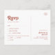 Cette simple carte postale de réponse RSVP de couleur rose blush rétro est parfaite pour votre mariage classique et funky aux tons terreux vintage. Le design présente une police minimaliste hippie rustique boho. La palette de couleurs neutres du désert du sud-ouest et le lettrage earthy bohemian du milieu du siècle se combinent pour un design de destination western moderne minimal parfait. N'hésitez pas à changer la couleur et à ajouter vos propres illustrations, graphiques ou photos. Si vous avez des questions sur la conception de ce produit, n'hésitez pas à nous contacter !