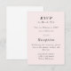 Cartes de réponse simple rose blush pour le printemps. Si les invités répondent en ligne, personnalisez cette carte pour aller avec la suite d'invitation. Toutes les zones de texte sont personnalisables. Remplacez le titre « Réception » par des informations sur « Hébergement, tenue vestimentaire, stationnement ou transport ». Associez-la à d'autres éléments de la collection pour une invitation et un rassemblement cohérents.