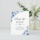 Carte de report de date de mariage Fleurs Bleu Pou