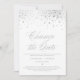 Changez la date ! Annoncez à votre famille et à vos amis le report de votre mariage avec cette élégante carte d'annonce. Elle présente des points de confettis en faux feuillet argenté avec un motif rayé. Personnalisez-la en ajoutant vos noms et d'autres détails. Cette carte de report de mariage en feuille d'argent sera également parfaite pour annoncer votre mariage intime.