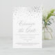 Carte de report de date en confettis argentés