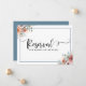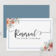 Magnifique carte de réservation avec de délicats bouquets floraux à l'aquarelle dans un mélange doux de rose, rose poussiéreux, ivoire, pêche, bleu ardoise nuageux, gris et tons de sauge. Utilisation de calligraphie manuscrite moderne, élégante et gracieuse. Dos de la carte dans un ton bleu ardoise/nuageux poussiéreux. Conception coordonnée à notre collection de mariage et d'événements "Éthérée" en bleu poussiéreux.