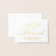 Gold Foil Fwirls Flourish Reserved Card par Cheryl Daniels @ glambrettyweddings. Cliquez sur l'icône vidéo en haut à gauche pour voir comment le papier doré ressemble et reflète la lumière en personne.
