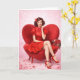 Ajoutez une touche de romance intemporelle à la Saint-Valentin avec cette carte de vœux vintage inspirée des pin-up. Avec une illustration rétro glamour associée à un design de dos à cœur rose doux, cette carte capture le charme classique avec une touche romantique moderne.