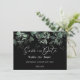 Cette carte de faire-part de mariage moderne à fond noir avec verdure présente des styles coordonnés faciles à mélanger et assortir en noir et blanc avec des éléments de verdure délicats ajoutant une touche gracieuse autour d'une typographie simple et sophistiquée et d'un script calligraphique minimal charmant. L'eucalyptus aquarellé et d'autres feuilles botaniques s'arquent magnifiquement partout, avec une émeraude foncée se fondant dans un effet ombré vers un vert menthe clair - pour ajouter juste ce qu'il faut d'une touche élégante de nature rustique à un fond contemporain neutre. Cette superbe collection créerait parfaitement une atmosphère d'élégance raffinée pour votre mariage de rêve formel ou décontracté ou autre événement spécial. Comme pour tous nos designs, si vous avez des questions ou des demandes spéciales, n'hésitez pas à nous contacter.