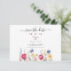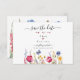Cette carte de mariage vibrante et enchanteresse "save-the-date" est une célébration de l'amour, mêlant la touche bohème à la beauté d'un jardin coloré. L'illustration captivante à l'aquarelle présente une profusion de fleurs sauvages dans des tons rose chaud, jaune ensoleillé, bleu rafraîchissant et lavande délicat, créant une atmosphère animée et romantique. Pour personnaliser davantage ceci, cliquez sur le lien "personnaliser davantage" et utilisez notre outil de conception pour ajuster ce modèle selon vos préférences.