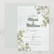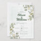 Invitation de mariage avec un design vert élégant et moderne. Dans l'esprit de la beauté intemporelle de la nature, notre invitation est ornée de la touche fraîche et parfumée des feuilles d'eucalyptus, symbolisant la force et la résilience que l'amour apporte à la vie.