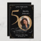 Carte de sauvegarde de date d'anniversaire 50 ans noir et or. Et une carte de sauvegarde de date élégamment conçue pour une célébration d'anniversaire spéciale, avec une photo personnalisée de la personne qui fête son anniversaire et une calligraphie script avec des éléments de fioriture vintage. Assez simple pour s'adapter à une variété de thèmes et de couleurs !