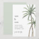 Carte de sauvegarde de date de palmier. Fond blanc. Numérique. Mariage de destination. Sage.