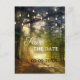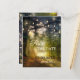 Carte postale de sauvegarde de date avec un chemin illuminé magiquement dans une forêt enchantée avec des guirlandes lumineuses festives. Au dos se trouve un modèle de code QR.