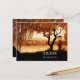 Une élégante carte postale de sauvegarde de date avec un arbre automnal coloré et une lanterne festive surplombant un lac romantique. Le verso montre la même scène automnale avec deux images de champs de texte de fond facultatifs. Si vous n'en avez pas besoin, vous pouvez les supprimer. (par exemple si vous utilisez des autocollants d'adresse).