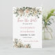 Annoncez votre jour spécial avec style avec cette élégante carte « Save the Date », ornée de florales rose pâle douces, de verdure délicate et d'une écriture gracieuse rose poussiéreux. Le design romantique donne le ton pour votre mariage à venir tout en laissant une première impression durable sur vos invités.