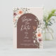 Annoncez votre grand jour avec style avec cette carte "Save the Date" florale rustique avec une arche de terracotta chaude, des roses blush et ivoire, et une typographie élégante. Parfait pour les mariages bohèmes, de jardin ou champêtres. Entièrement modifiable avec vos propres noms, date et lieu.