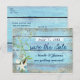 Carte de sauvegarde de date tropicale de plage de bois bleu. Articles assortis disponibles.