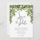 Simple sauvegarde de la date, mariage de jardin, papeterie de mariage verdure, carte botanique à feuilles vertes