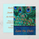 Fait partie de la "Suite de mariage de paon". Une carte élégante de sauvegarde de date qui, comme le reste des produits de mariage de paon, peut être personnalisée avec votre choix de couleur et de style de police.