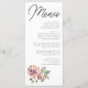Cette carte de menu à l'aquarelle florale rose et mauve romantique est le design parfait pour compléter un mariage élégant et sophistiqué. Avec de superbes fleurs à l'aquarelle de rose vintage, dans des teintes de blush, rose, mauve, pêche, sauge, olive et sarcelle, c'est sûr de compléter le look que vous désirez.