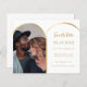 Sur le devant : Ajoutez votre propre photo de taille verticale. Un cadre d'arche photo en faux or. Un fond blanc classique, texte doré. Personnalisez et ajoutez vos noms et la date.