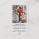 Carte moderne de service funèbre mémorial avec un magnifique oiseau cardinal rouge perché sur une branche d'arbre nue. Conception d'après une peinture à l'huile originale de l'artiste professionnel Daniel Fishback. Le verso de la carte est personnalisable avec le nom et les dates de vos proches.